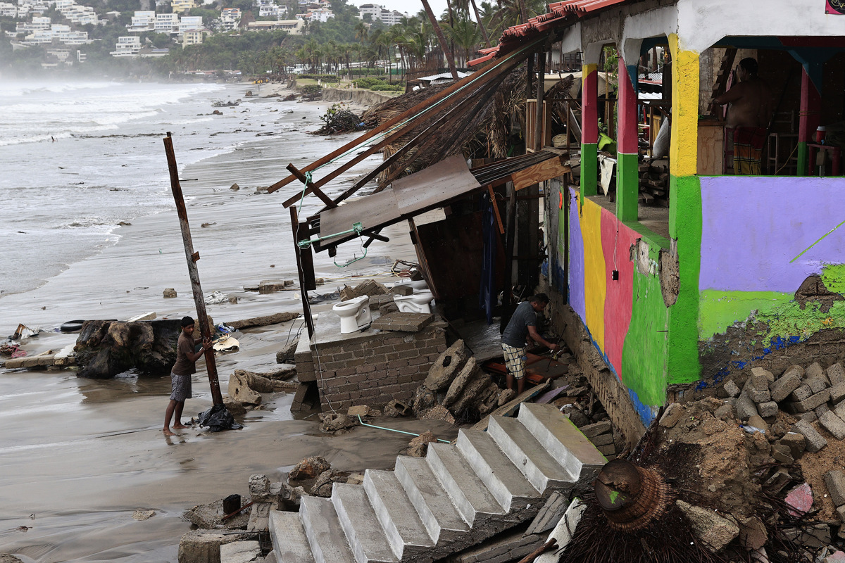 Protección Civil local informó además del colapso de techos en una vivienda del Zócalo y en las instalaciones del DIF municipal, ambos dañados anteriormente por los huracanes Otis y John. En fraccionamientos como Misión del Mar y Luis Donaldo Colosio, las calles permanecen bajo el agua.