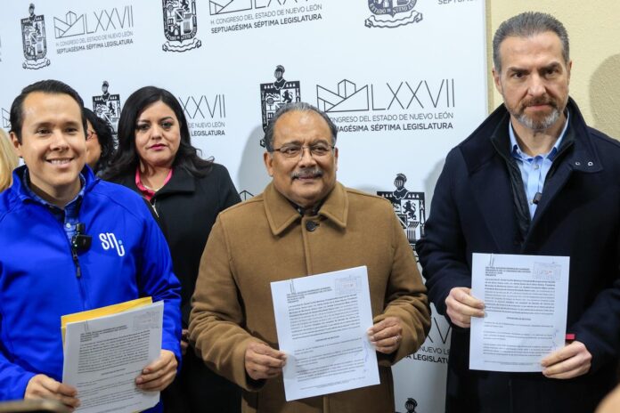 Monterrey, NL.– El alcalde de Monterrey, Adrián de la Garza Santos, acudió este lunes al Congreso del Estado acompañado por los presidentes municipales de San Nicolás, Daniel Carrillo, y de Escobedo, Andrés Mijes, para presentar una iniciativa de reforma a la Ley de Coordinación Hacendaria, con el objetivo de modificar la distribución de las participaciones a los municipios de Nuevo León.