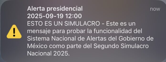 Este viernes 19 de septiembre se realizó el Simulacro Nacional 2025, en el que participaron todas las entidades del país. En esta edición se puso en marcha el sistema de alertamiento masivo mediante más de 80 millones de teléfonos celulares, lo que permitió notificar de forma simultánea a la población mexicana.