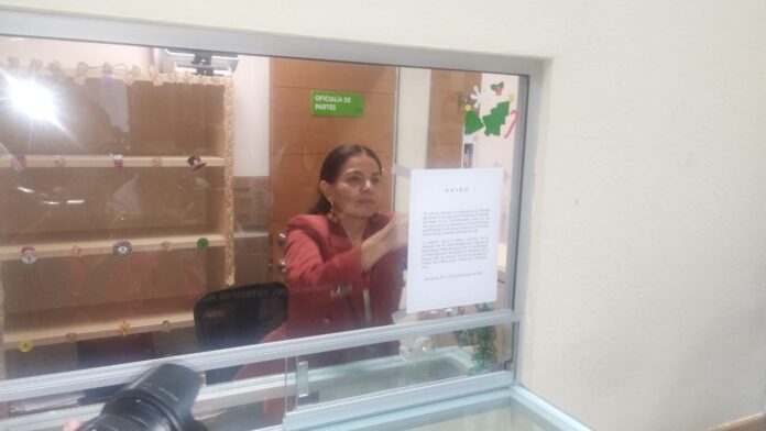 Este área del Poder Legislativo cerraba labores en punto de las 16:00 horas, sin embargo, cuando estaba por cumplirse está hora, una de las en agradas salió y pego un aviso.