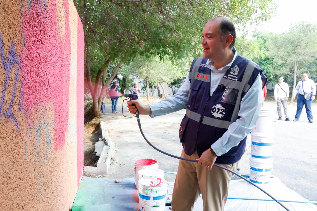 En total, dijo el funcionario municipal, se han pintado 610 mil metros cuadrados de fachadas, lo que representa un avance aproximado del 40 por ciento de la meta anual de Transformando Monterrey.