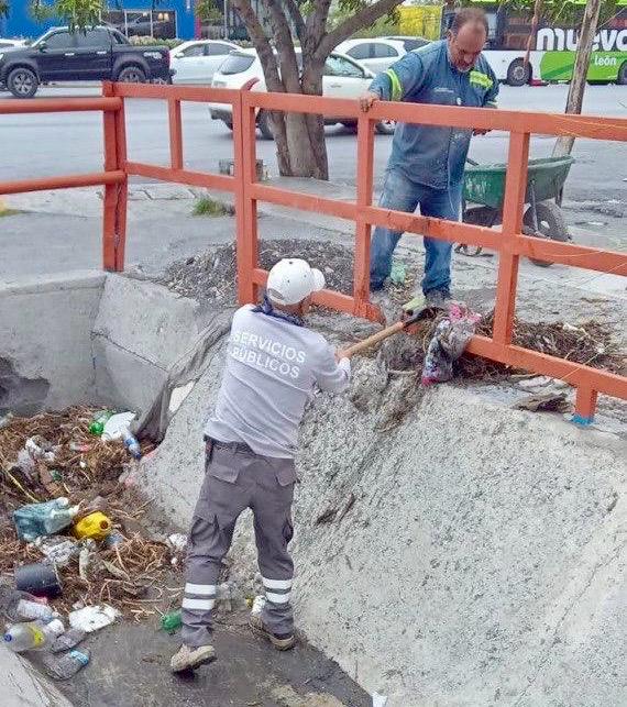 Cuadrillas de la Secretaría de Servicios Públicos retiran toda acumulación de basura, desechos, piedras y maleza que podría dificultar el curso del agua en rejillas, canalones y desagües.