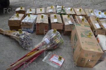 Fueron localizados aproximadamente 347 kilos de pirotecnia en diversas presentación, mismas que representan un riesgo para la población.