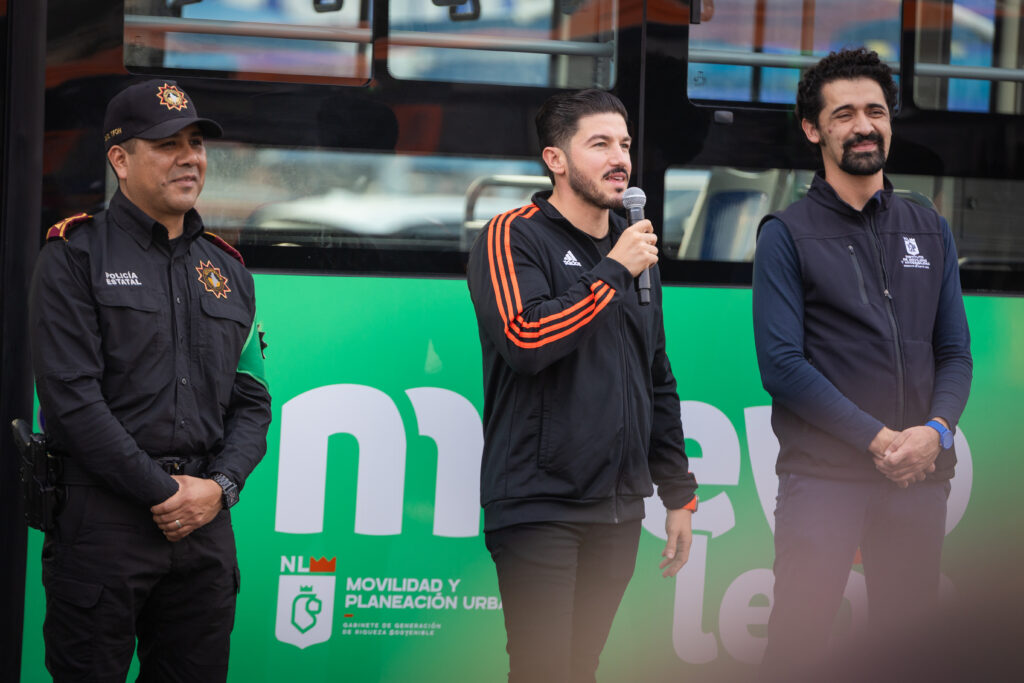 Nuevo León.- Como parte de la reestructuración y renovación de la flota del servicio público del transporte, el Gobernador Samuel Alejandro García Sepúlveda entregó 20 nuevas unidades a la Ruta 301 Revolución.
