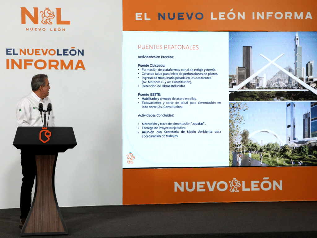 El Secretario de Movilidad también dio a conocer los avances en los puentes peatonales que estarán alrededor de las nuevas líneas del Metro, como lo son el Puente Obispado y el del ISSSTE, así como el Puente Lineal y taludes en la avenida Constitución.