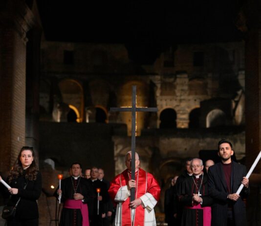 Papa León XIV retoma tradición histórica y carga la cruz en todo el Vía Crucis en Roma