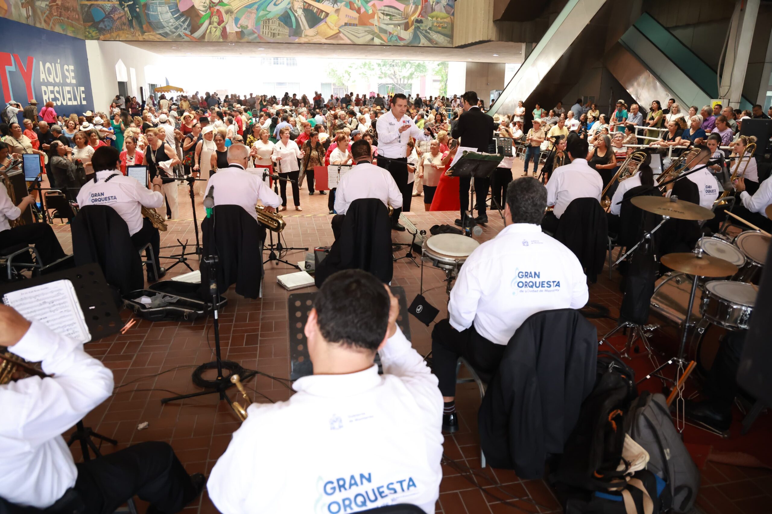 “Hoy es un día para bailar con un motivo especial: celebrar el 45 aniversario de la Gran Orquesta de Monterrey. El aplauso es para ellos, el gozo es para ellos, y todo nuestro agradecimiento por entregar el corazón cada día”, expresó Silvia Nancy García Treviño, directora general de Turismo es Cultura.