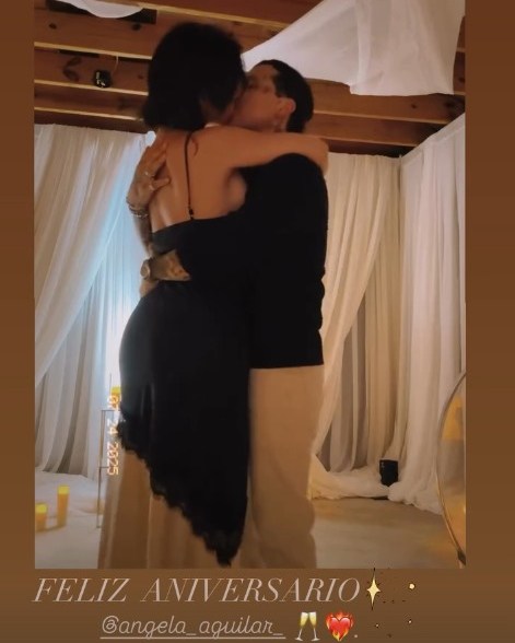 México.- Christan Nodal y Ángela Aguilar, celebraron con una cena romántica y fuego artificiales, su primer aniversario de bodas.