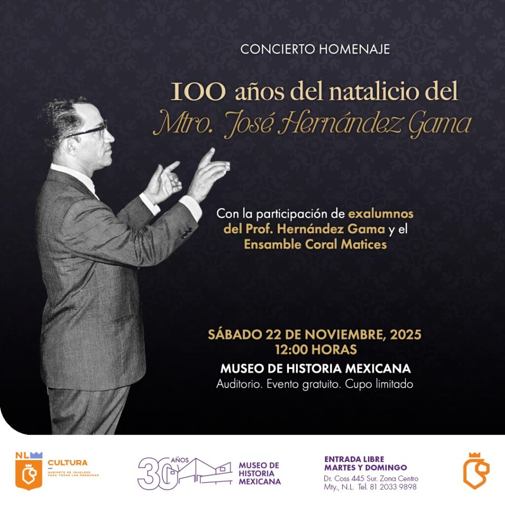 El homenaje “100 años del natalicio del Mtro. José Hernández Gama”, se llevará a cabo el sábado 22 de noviembre a las 12:00 horas en el Auditorio del Museo de Historia Mexicana. Para más información sobre el evento visite www.3museos.com
