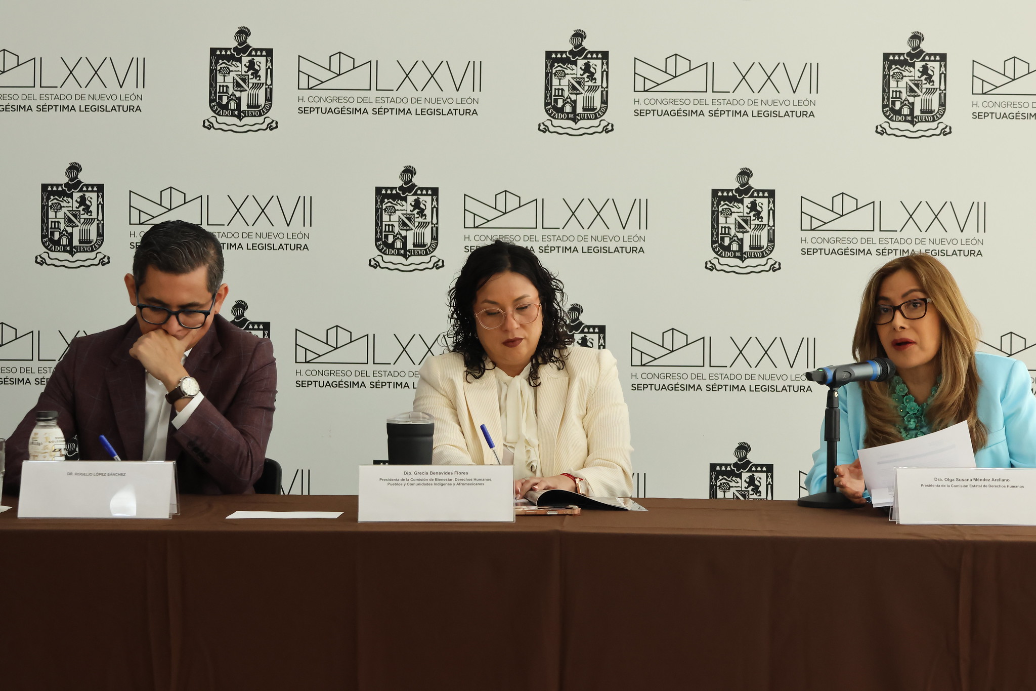 Presidenta de la Comisión de Bienestar, Derechos Humanos, Pueblos y Comunidades Indígenas y Afromexicanos, Benavides participaron en la mesa de trabajo llevada a cabo en el Congreso Local.