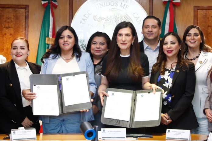 La firma estuvo a cargo de las Presidentas de ambos órganos legislativos, Kenia López Rabadán por parte de la Cámara Baja e Itzel Castillo Almanza, por parte del Poder Legislativo del estado.