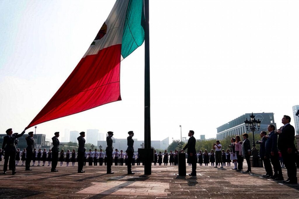 En la explanada de los Héroes se izó la bandera en conmemoración del natacilicio de Benito Juárez y se realizaron los honores correspondientes.