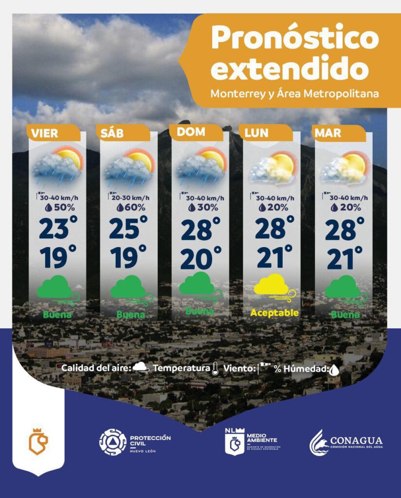 Las lluvias son debido a un canal de baja presión, combinado con humedad del Golfo de México y del Pacífico, provocará lluvias ligeras a moderadas en Nuevo León.