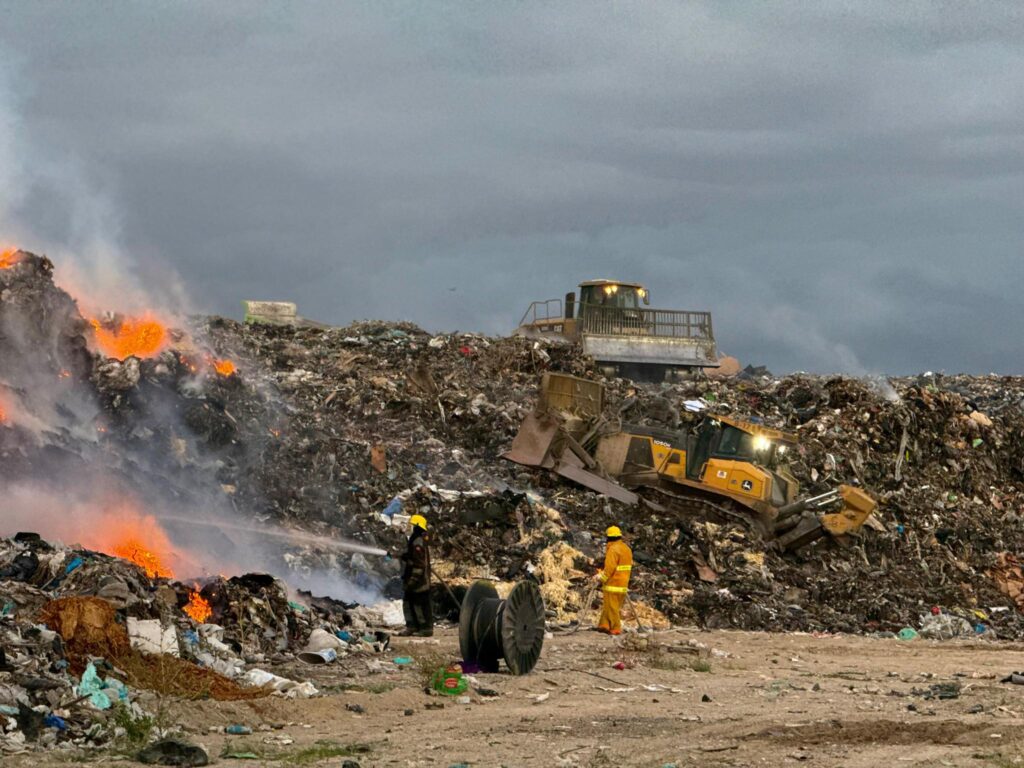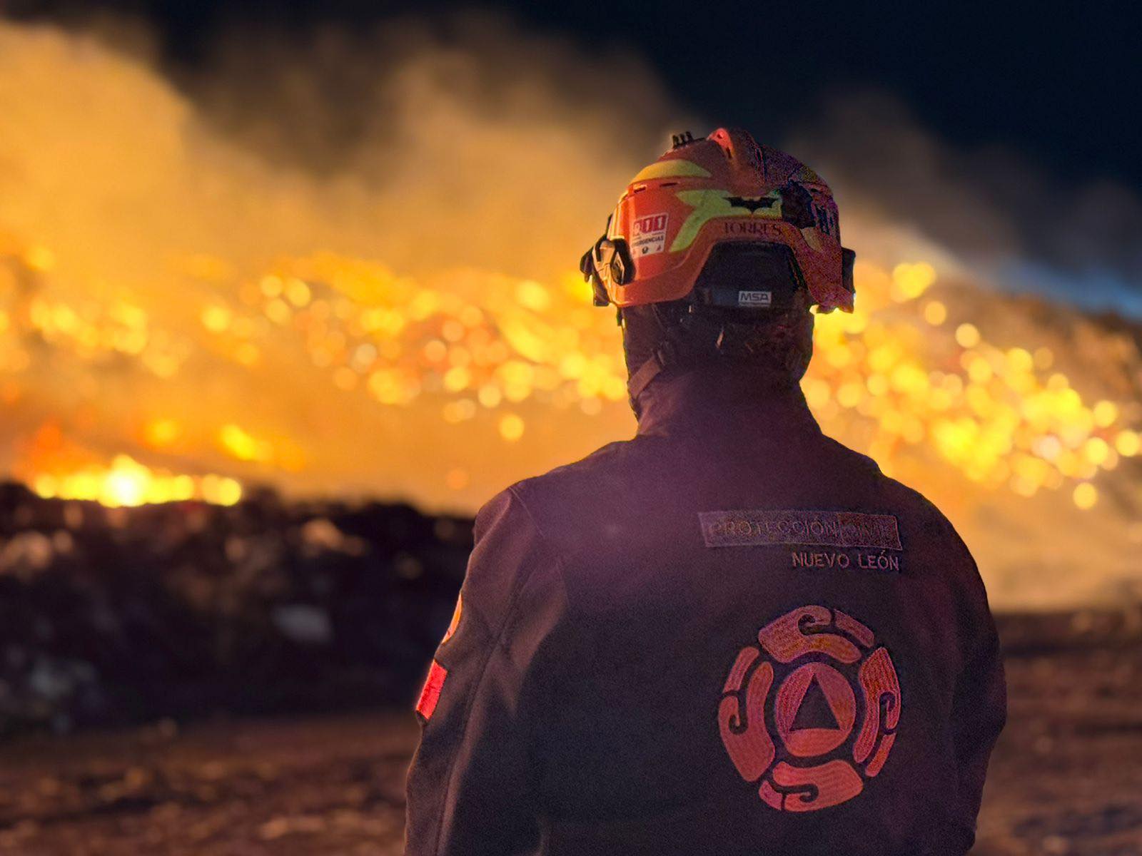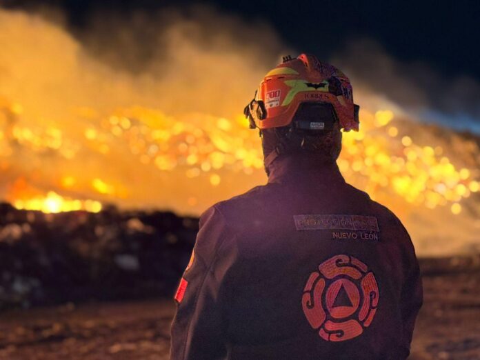 Los cuerpos de auxilio del Estado y de los muncipios de Salinas Victoria y El Carmen se movilizaron hacia el lugar para combatir el incendio que estaba consumiendo basura y desechos.