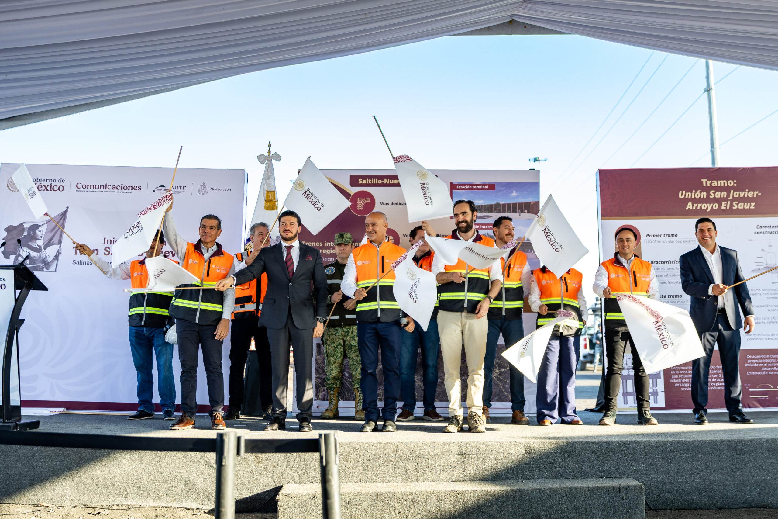 Nuevo León.- Atestiguado por la Presidenta Claudia Sheinbaum desde Palacio Nacional, autoridades federales y estatales encabezadas por el Gobernador, Samuel Alejandro García Sepúlveda, arrancaron este martes los trabajos de construcción del primer tramo en Nuevo León del Tren del Norte, Saltillo-Monterrey-Nuevo Laredo.