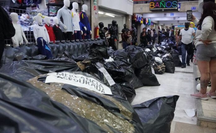 Autoridades federales realizaron un operativo en Tepito, donde decomisaron al menos 25 toneladas de mercancía apócrifa relacionada con la Copa Mundial de la FIFA 2026.