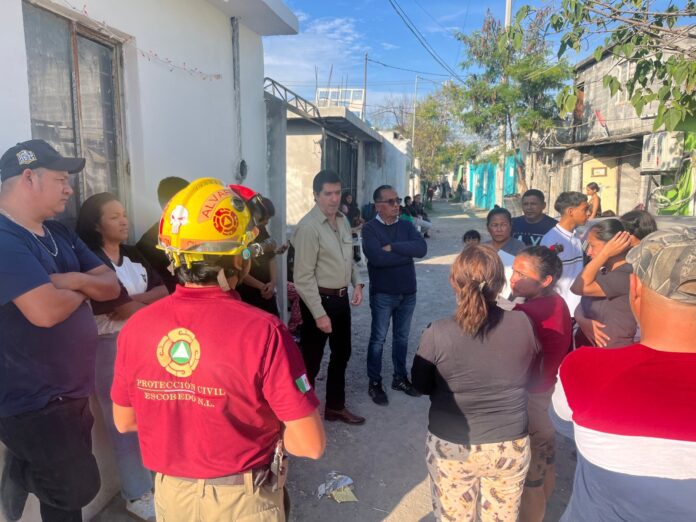 Canales Rodríguez dialogó con las familias mientras brigadistas de Protección Civil de Escobedo acordonaron la zona y dieron recomendaciones a los afectados para evitar estar en el lugar.