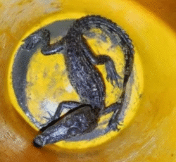 Los elementos Seguridad al momento de la detención le encontraron un caimán de aproximadamente 50 centimetros de largo, una tortuga, así como un rifle de postas y 10 envoltorios con hierba verde con las caracteristicas de la marihuana.