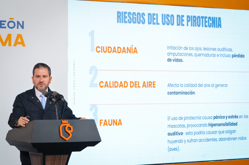“El segundo, pues el tema de calidad del aire, ustedes saben cómo nos afecta tener replicado por la zona metropolitana de Monterrey en estas fechas en el 24 de diciembre, el día 31 de diciembre a toda la gente tronando pirotecnia, pues obviamente tiene un impacto real en la calidad del aire de la ciudad en estos días.