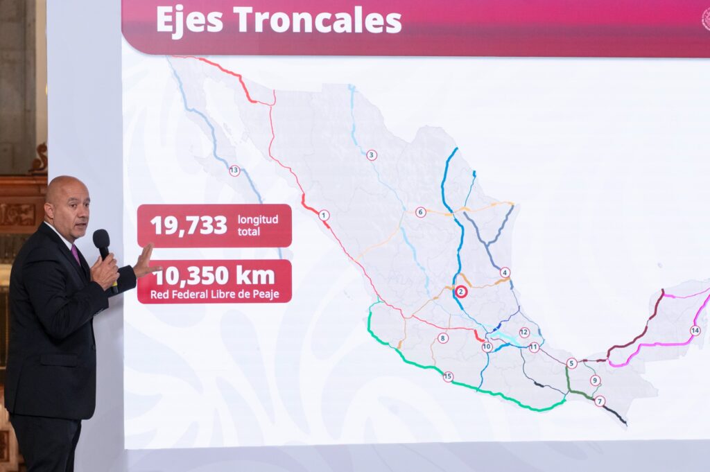 El secretario de Infraestructura, Comunicaciones y Transportes, Jesús Antonio Esteva Medina, explicó que de los 18 mil km que serán intervenidos a través del Programa Nacional de Conservación de Carretera y Bachetón, 7 mil 100 km, el 70 por ciento, corresponden a ejes troncales.