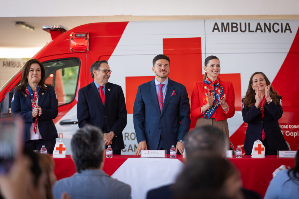 En su calidad de presidenta honoraria de la Cruz Roja Mexicana delegación Nuevo León, Mariana Rodríguez resaltó que la labor altruista de la institución da un paso al frente todos los días, con una misión firme liderada por mujeres, la de proteger y salvar vidas.