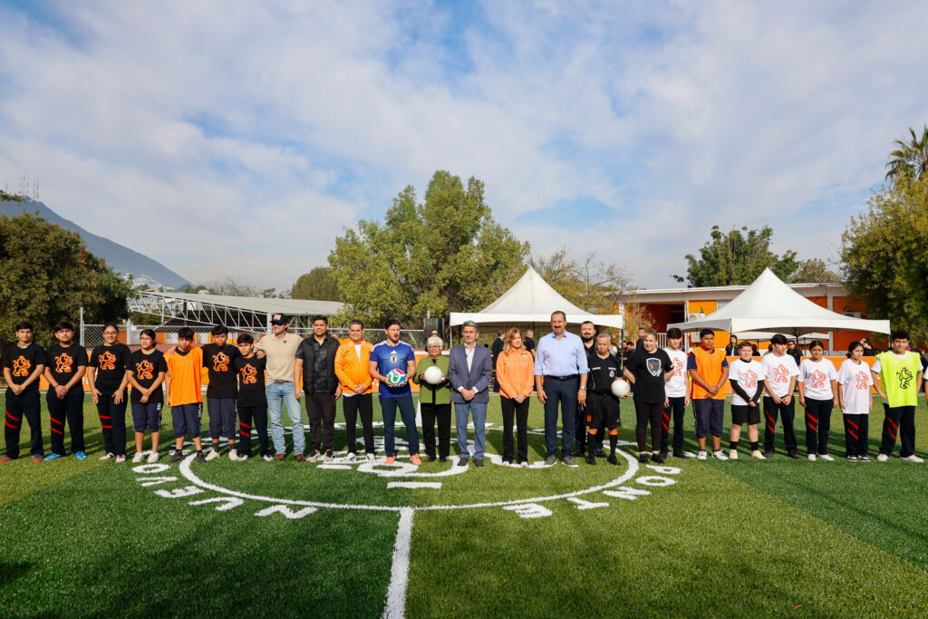 Nuevo León.- En el retorno a las clases de más de un millón de alumnas y alumnos de educación básica en Nuevo León, el Gobernador del Estado, Samuel Alejandro García Sepúlveda, dentro de la Estrategia Estatal “Ponte Nuevo, Ponte Mundial”, rumbo a la Copa Mundial de la FIFA 2026, inauguró la cancha número 390 en la Escuela Secundaria 31 “Libertad”.