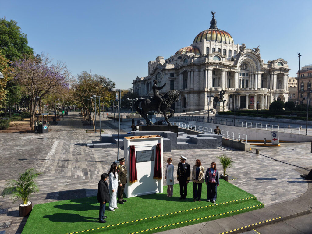 La Jefa del Ejecutivo Federal develó la placa conmemorativa a la Marcha de la Lealtad en la lateral del Palacio de Bellas Artes, en donde se reconoce al teniente alumno de Estado Mayor, Gerardo Ríos Covarrubias, quien perdió la vida durante el recorrido del Castillo de Chapultepec a Palacio Nacional que realizó Francisco I. Madero, como muestra de que su entrega “dio muestra de la congruencia de lealtad con que se forjan las y los hijos del Heroico Colegio Militar”.