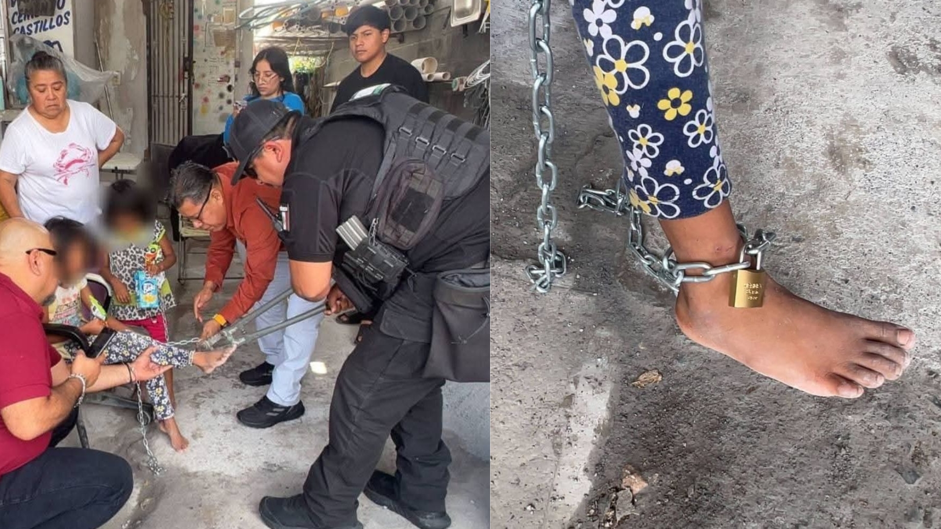 Y al verificar en qué condiciones estaban, encontraron que tenían un candado y cadenas en sus pies para impedir que escaparan.