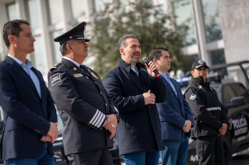 Monterrey, Nuevo León.- Para fortalecer la vigilancia en Monterrey, el alcalde Adrián de la Garza entregó a la Secretaría de Seguridad y Protección Ciudadana 15 nuevas unidades y torretas inteligentes en 50 vehículos.