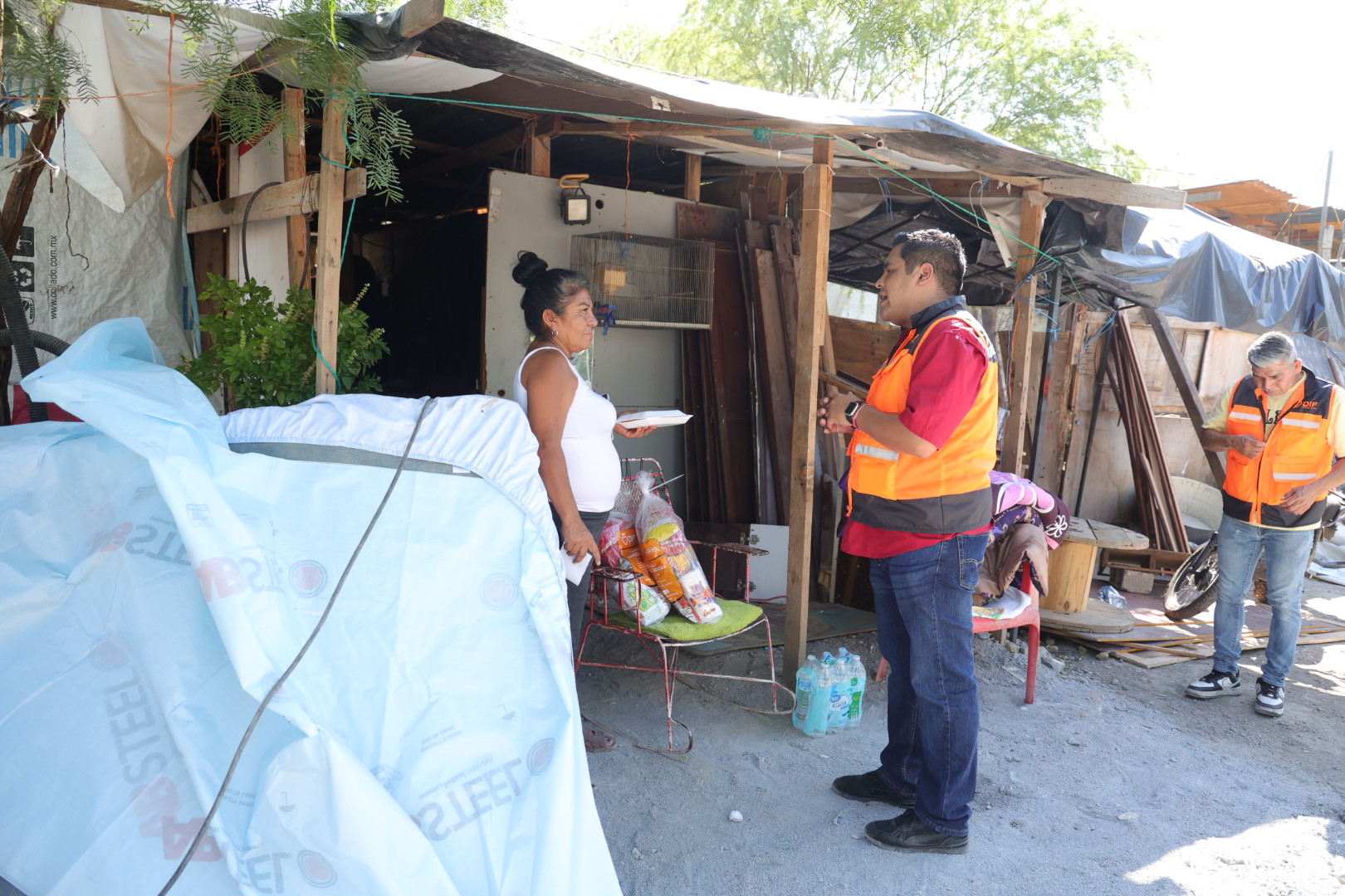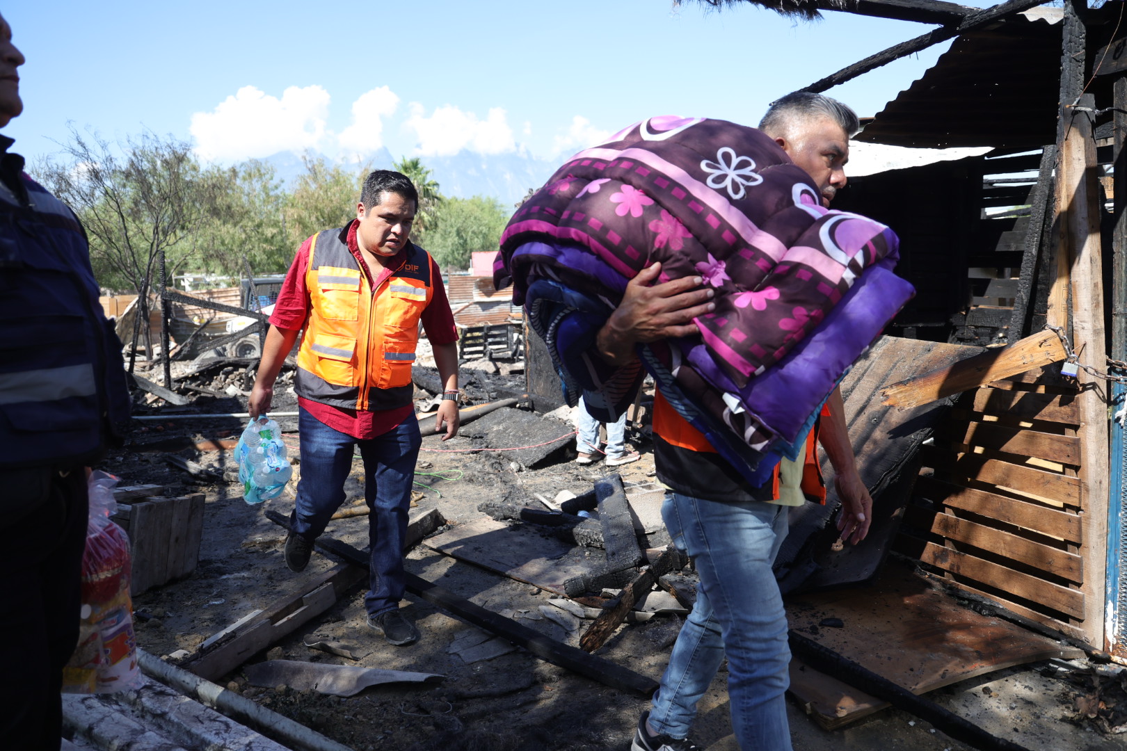 Una vez realizadas las labores para sofocar el incendio, desde temprana hora del día viernes, personal de la Subdirección de Gestoría Social de DIF Nuevo León, estuvo entregando despensas, colchonetas, tamales, cepillos de dientes, y otros artículos de limpieza, así como medicamentos, a su vez levantó un registro para revisar las necesidades más apremiantes de los habitantes de este sector.
