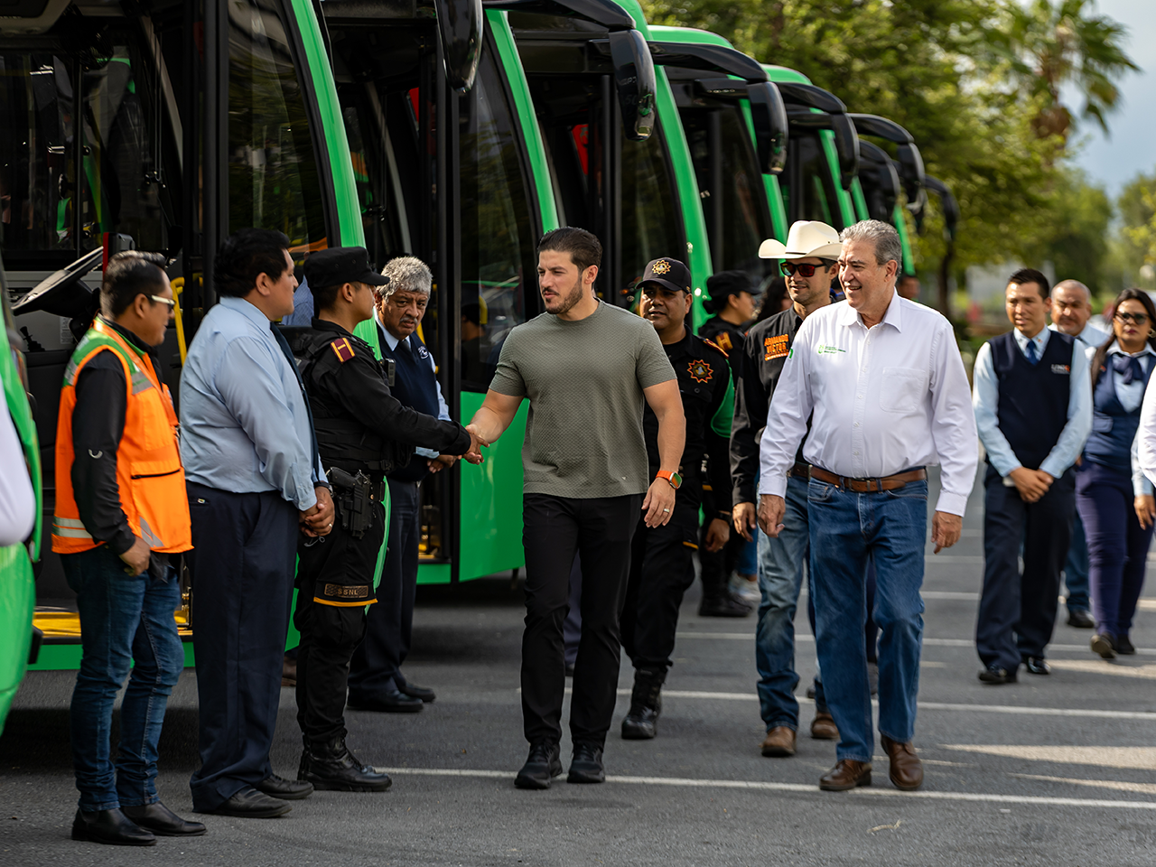 Acompañado del Secretario de Movilidad y Planeación Urbana, Hernán Villarreal, y del Director General de Metrorrey, Abraham Vargas, el Mandatario estatal destacó que al atender el circuito más importante de San Pedro, su administración se acerca a la meta de 4 mil nuevos autobuses para el estado, y cumple la promesa a Mauricio Fernández de terminar los proyectos conjuntos.
