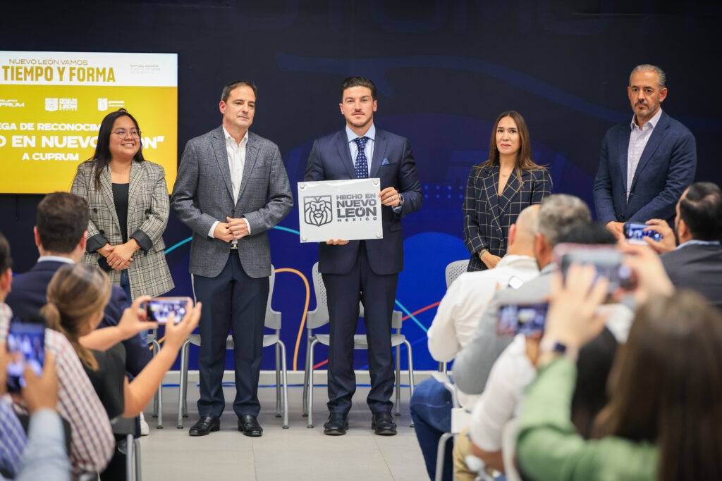 Nuevo León.- Siguiendo con el objetivo de destacar a las empresas que elaboran productos terminados dentro del territorio estatal y con ello fortalecer la identidad industrial de la región, el Gobernador de Nuevo León, Samuel Alejandro García Sepúlveda llevó a cabo la entrega del reconocimiento “Hecho en Nuevo León” a la empresa Cuprum.
