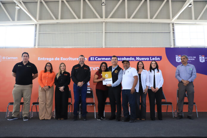 El Carmen, Nuevo León.– El Instituto de la Vivienda de Nuevo León realizó la entrega de 332 escrituras a familias de los municipios de El Carmen y General Escobedo, como parte de las acciones para fortalecer la certeza jurídica y la regularización patrimonial en el estado.
