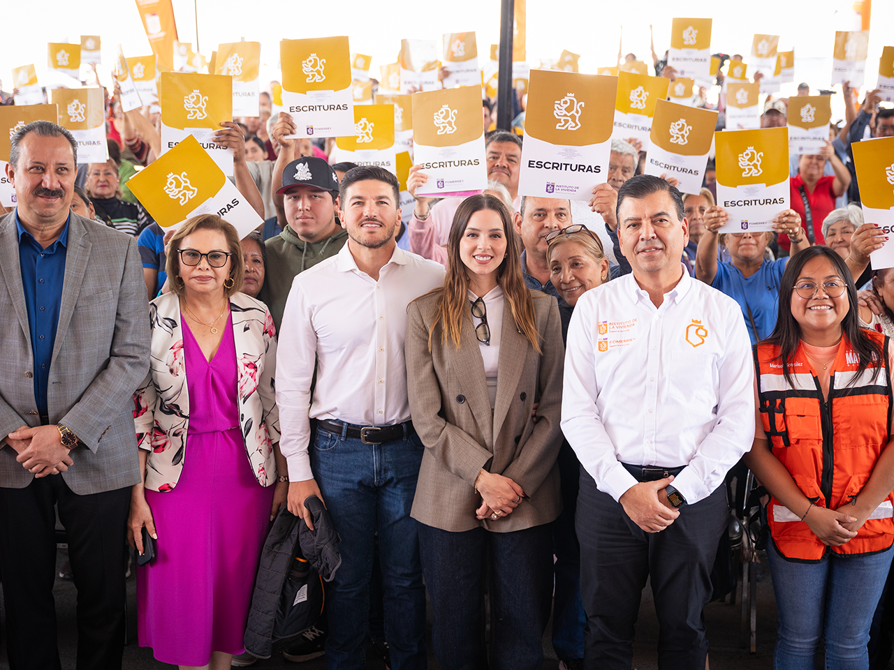El acto fue encabezado por el gobernador Samuel García Sepúlveda y la titular de la oficina Amar a Nuevo León, Mariana Rodríguez Cantú, quienes entregaron los documentos a ciudadanos de Apodaca, Monterrey, San Nicolás de los Garza y Santa Catarina.