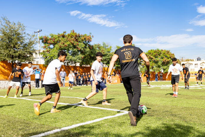 Durante el acto, el Mandatario estatal señaló que esta intervención se integra a la estrategia “Ponte Nuevo, Ponte Mundial”, orientada a fomentar la cultura deportiva y actividades relacionadas con el futbol en el marco de la próxima Copa Mundial de la FIFA 2026.