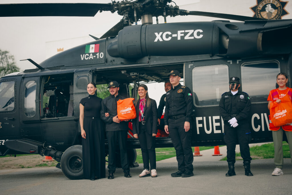 Nuevo León.-  El Gobernador de Nuevo León, Samuel Alejandro García Sepúlveda, acompañado de Mariana Rodríguez Cantú y de la Secretaria de Igualdad e Inclusión, Martha Herrera, dio salida al helicóptero Black Hawk que lleva ayuda a los afectados por las inundaciones y lluvias  en Veracruz.