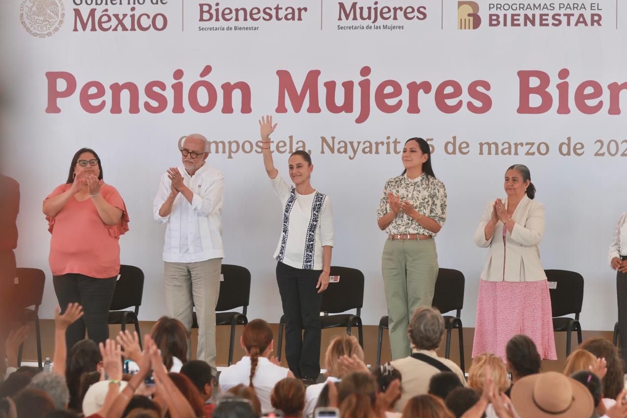 Desde el municipio de Compostela, Nayarit, ante mujeres de esa región, Montiel Reyes destacó que la Presidenta Claudia Sheinbaum, la primera mujer presidenta de México, cumple su palabra y compromiso de continuar y fortalecer los Programas de Bienestar, por ello de su mente y corazón nace la Pensión Mujeres Bienestar que reconoce el esfuerzo de las mexicanas a partir de los 60 años, cuatro años antes de recibir la Pensión para el Bienestar de las Personas Adultas Mayores de 65 años.