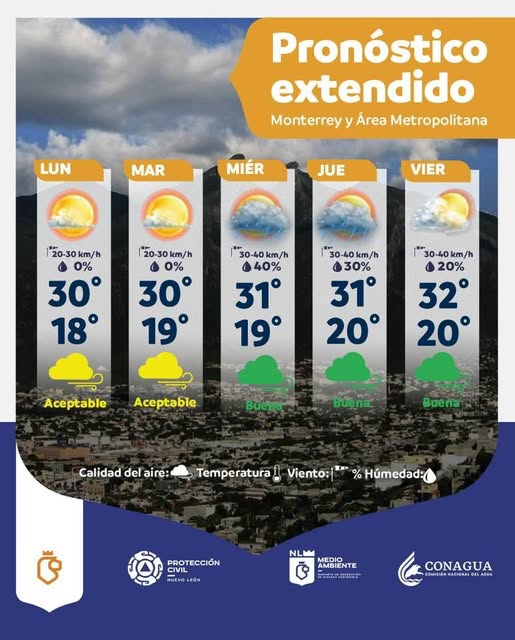 Esto es debido al desplazamiento del frente frío número 38 y canales de baja presión aunados a divergencia y al persistente ingreso de humedad proveniente del océano Pacífico, golfo de México y mar Caribe, los cuales son los que incrementarán la probabilidad de lluvias y chubascos vespertinos con posibles descargas eléctricas en Nuevo León.