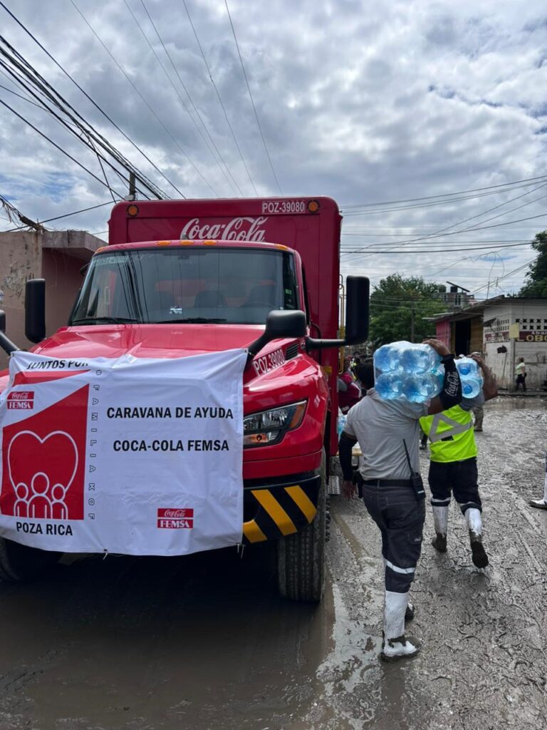 Desde el inicio de la contingencia, Coca-Cola FEMSA ha desplegado un amplio operativo de asistencia para garantizar el acceso a agua purificada, alimentos e insumos básicos en las zonas más afectadas.