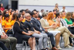 Se contó con la presencia de Javier Navarro Velasco, Coordinador de Gabinete de Buen Gobierno quien además participó como testigo de honor acompañando a ambas titulares, la presencia de las y los atletas, se vio representada en el presidium por la atleta Ariadna Mejía de karate y la entrenadora Fátima Huerta de remo.