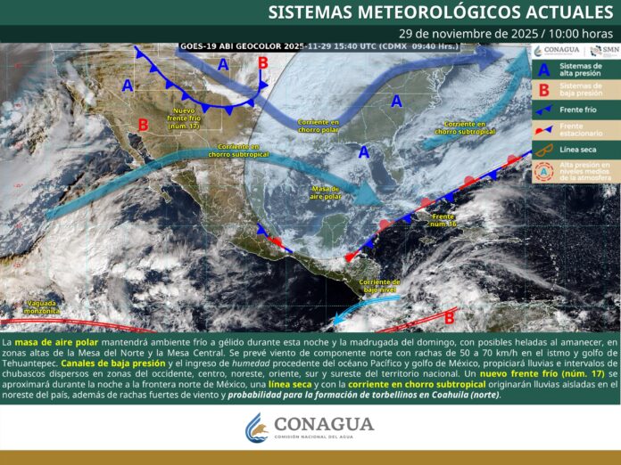 Nuevo León.- Protección Civil Nuevo Léon, informó que se espera que mañana domingo ingrese a la entidad el frente frío número 17, el cual se desplazarán sobre el norte y noreste del país, teniendo interacción con la corriente de chorro subtropical, por lo que se se esperan:
