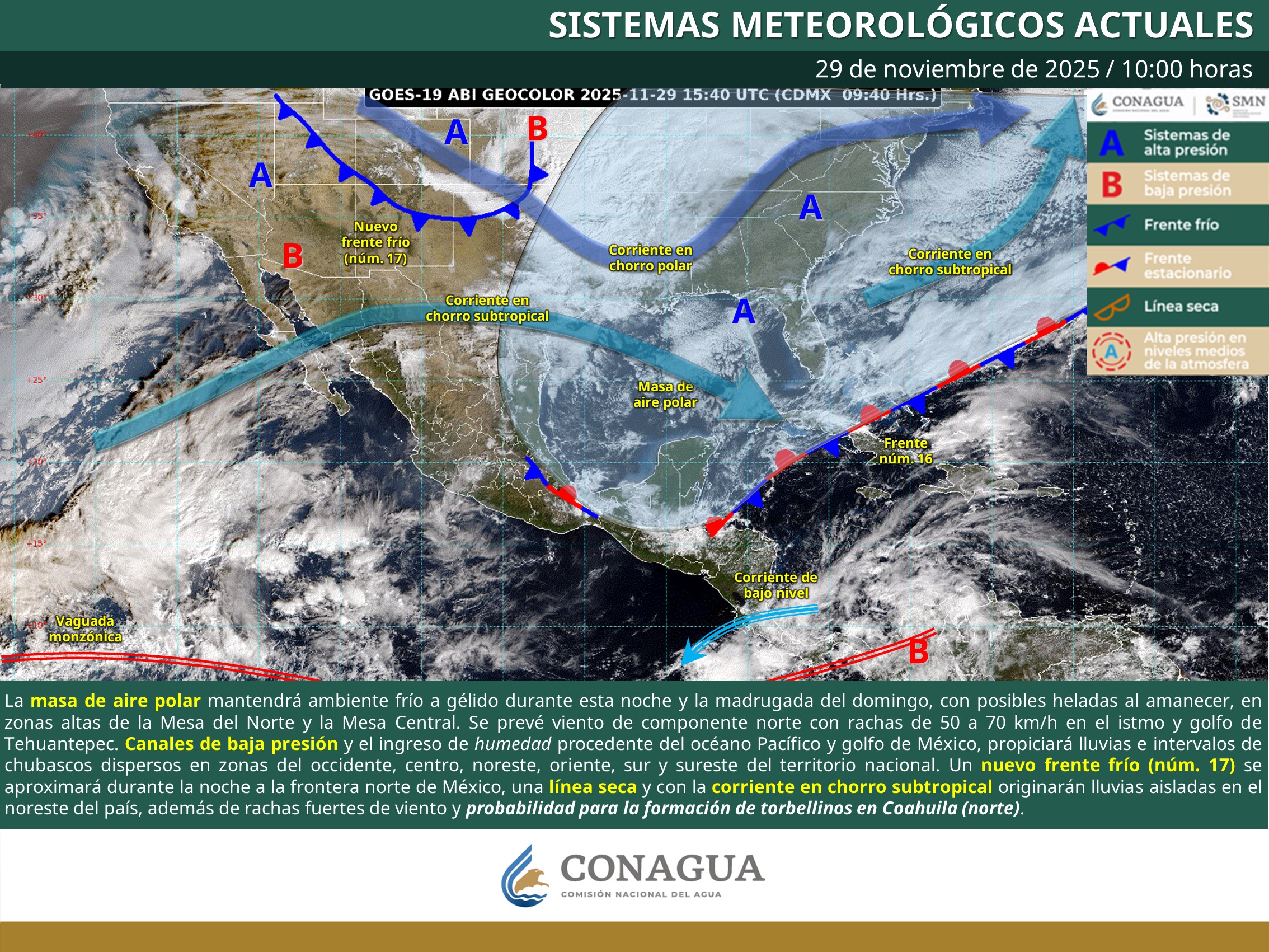 Se recomienda a la población mantenerse al tanto de las fuentes oficiales, así como de cuidar a los niños y a los adultos mayores de los cambios bruscos de temperatura y abrigarlos bien.