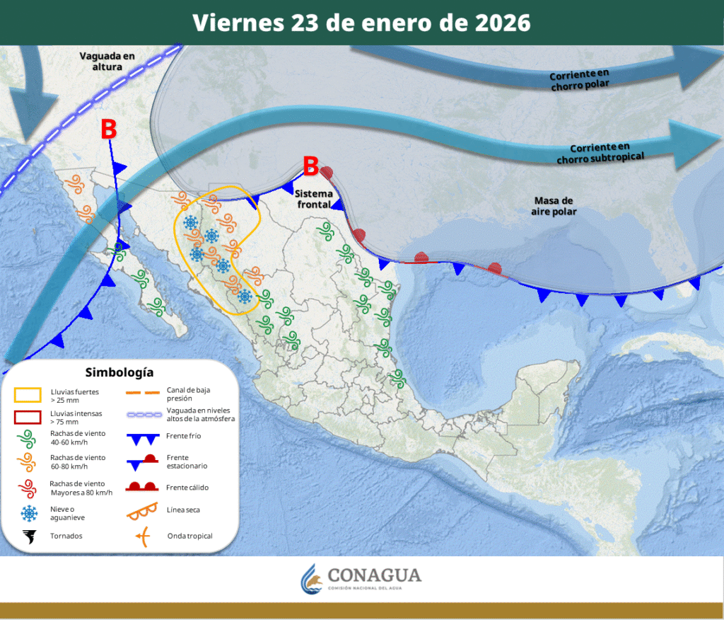 Los efectos del sistema frontal en Nuevo León se sentirián a partir del sábado en la tarde y se intensificaría el ambiente frío principalmente entre domingo y lunes, con posibilidad de condiciones invernales en zonas altas del estado, ya que viene acompañado de una masa de aire polar.