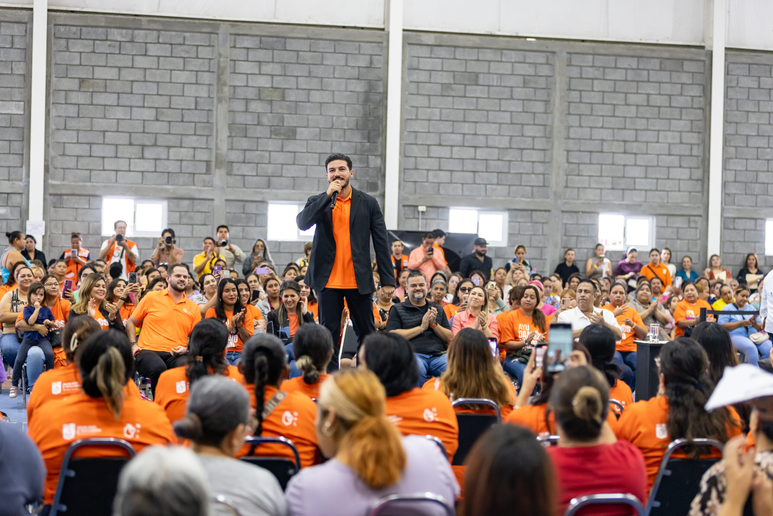 Cadereyta Jiménez, Nuevo León.- En el marco del Día Internacional para la Eliminación de la Violencia contra las Mujeres, el gobernador Samuel Alejandro García Sepúlveda encabezó en Cadereyta la entrega de tarjetas del programa “Ayudamos a las Mujeres”, iniciativa que busca fortalecer la autonomía económica de jefas de familia y cuidadoras mediante un apoyo mensual de 2 mil pesos, además de acompañamiento integral.