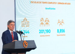 Otro tema fue las escuelas de tiempo completo y jornada ampliada en este caso iniciarán con este modalidad mil 344 escuelas durante este ciclo escolar. A través de ellas se impulsa a las niñas y niños proporcionándoles alimentos, apoyo de uniformes, útiles, mochilas, calzado, actividades culturales, cívicas y deportivas, extras a lo que implica su periodo escolar diario. Con ellas se ha beneficiado a más de 200 mil alumnos y alumnas.
