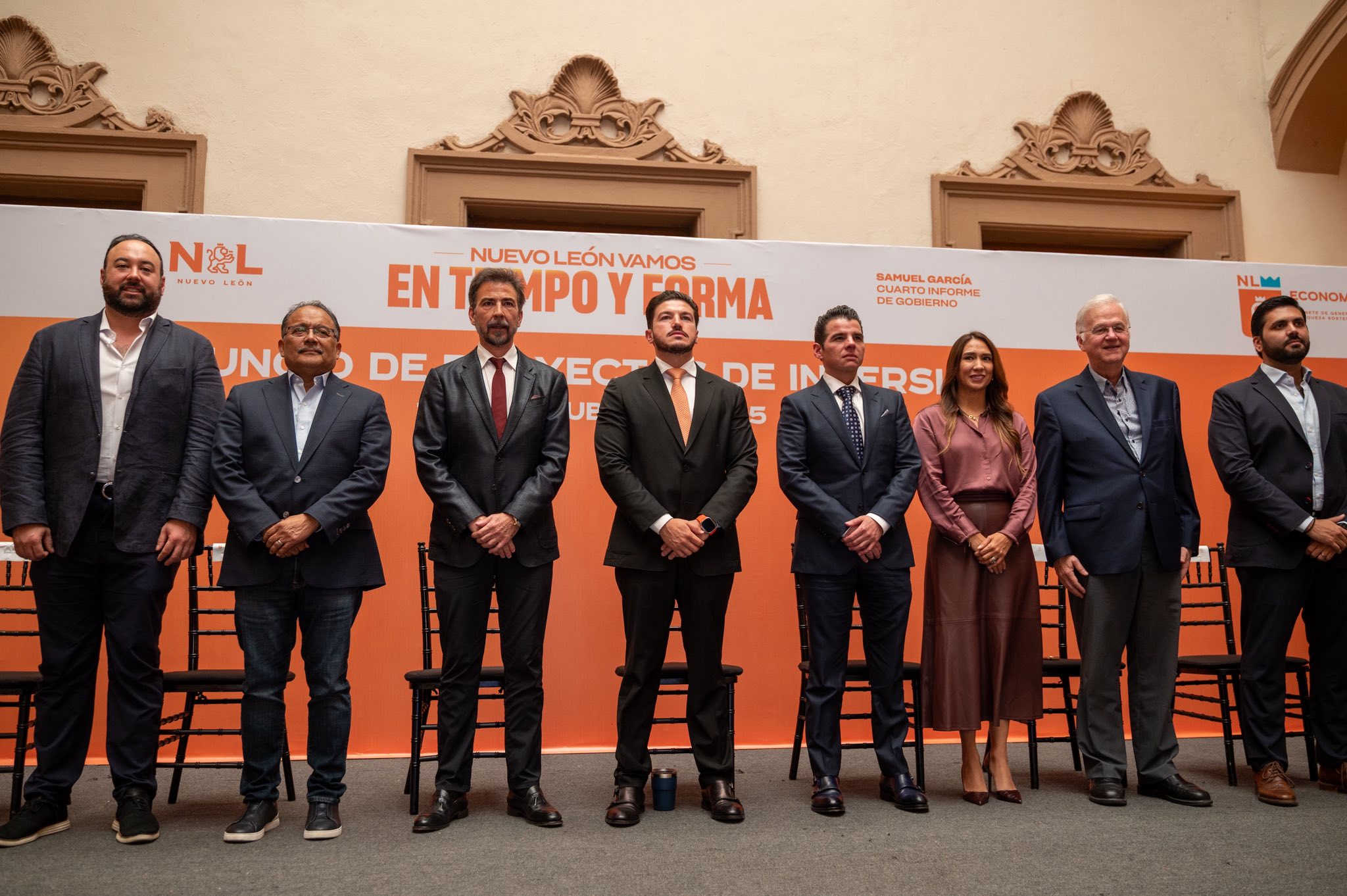 “Y entonces sí, con mucho gusto, anunciamos ya 396 proyectos de inversión extranjera en cuatro años del nuevo Nuevo León, más de 400 mil empleos y un monto superior a los 104 billones de dólares de inversión”.
