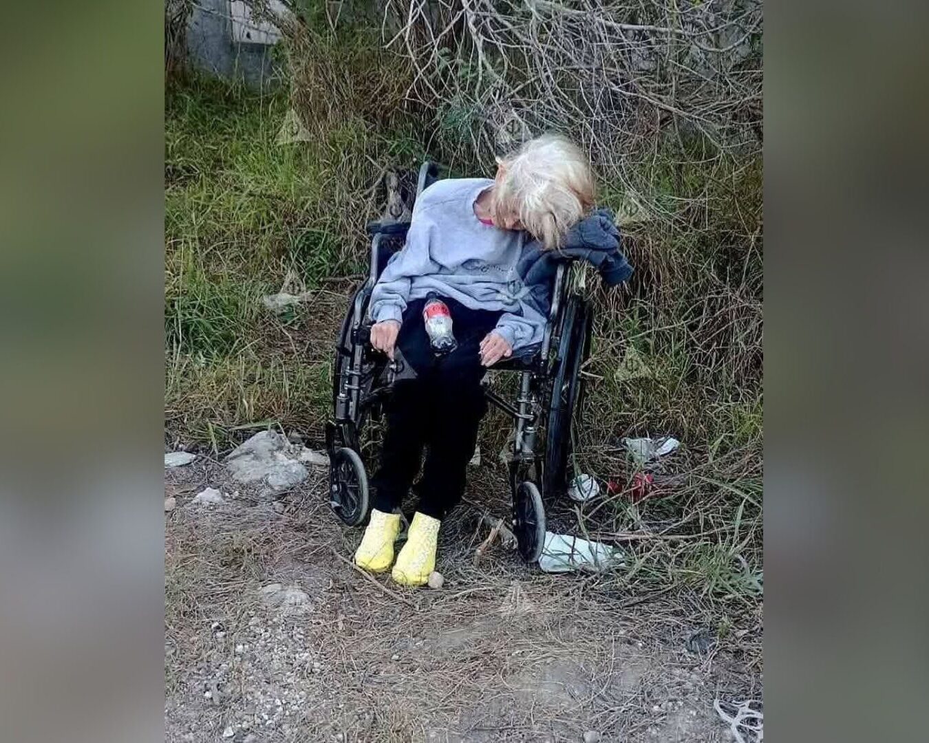 Y fue hasta ahora en que fue localizada abandonada, postrada a una silla de ruedas, bajo la lluvia y el fuerte frio.