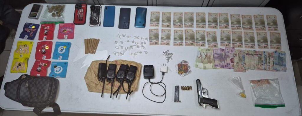 Se les encontraron nueve envoltorios de hierba con las características de la mariguana; ocho cigarrillos con el mismo enervante; un arma de fuego corta, seis cartuchos hábiles, 55 pastillas psicotrópicas, dos planillas de LCD, 28 envoltorios con sustancia similar a la cocaína en polvo, 14 envoltorios de droga tipo cristal, aparatos de radiocomunicación y dinero en efectivo.