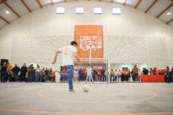 Antes de participar junto con funcionarios y deportistas en una «cascarita», expresó que ya afinan las obras para recibir a los visitantes durante el magno evento deportivo.