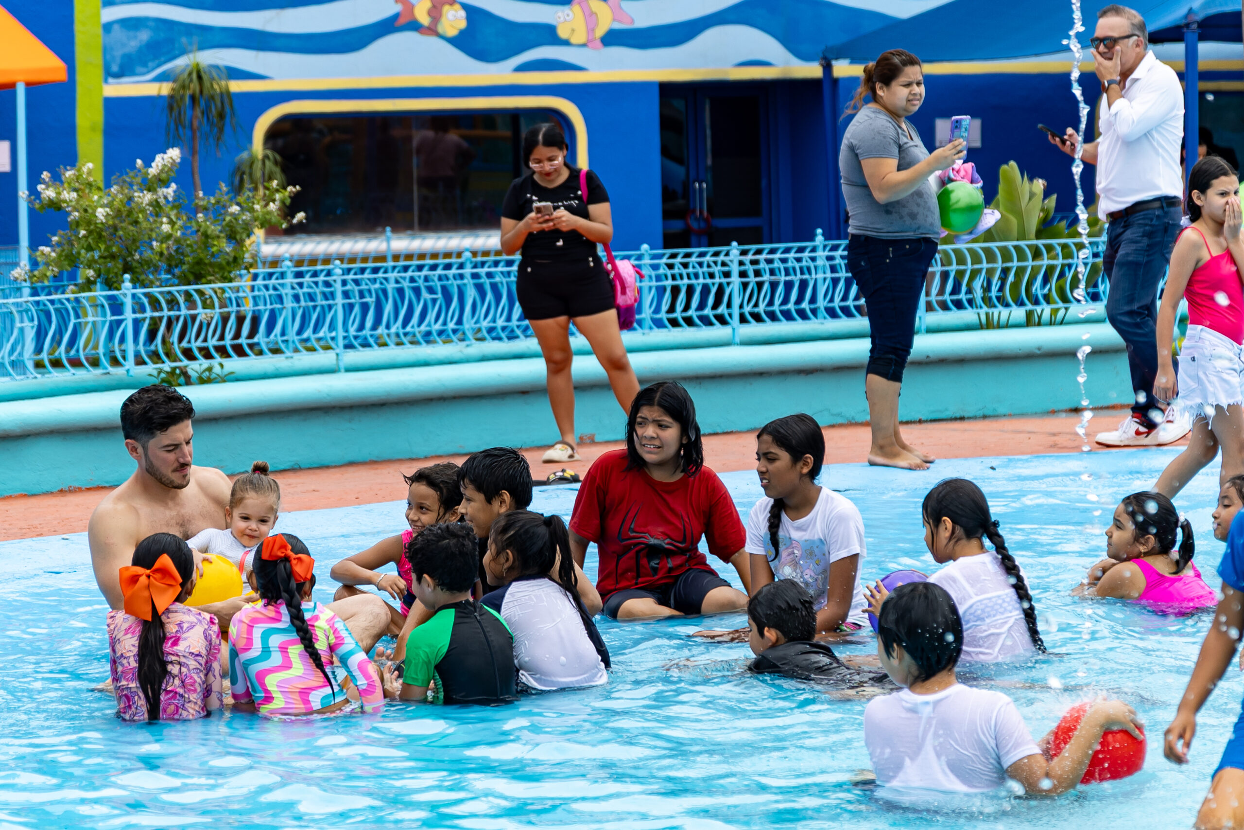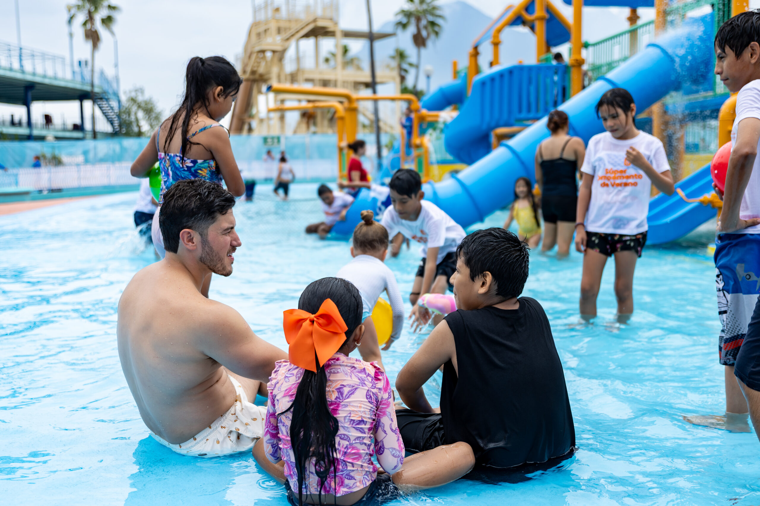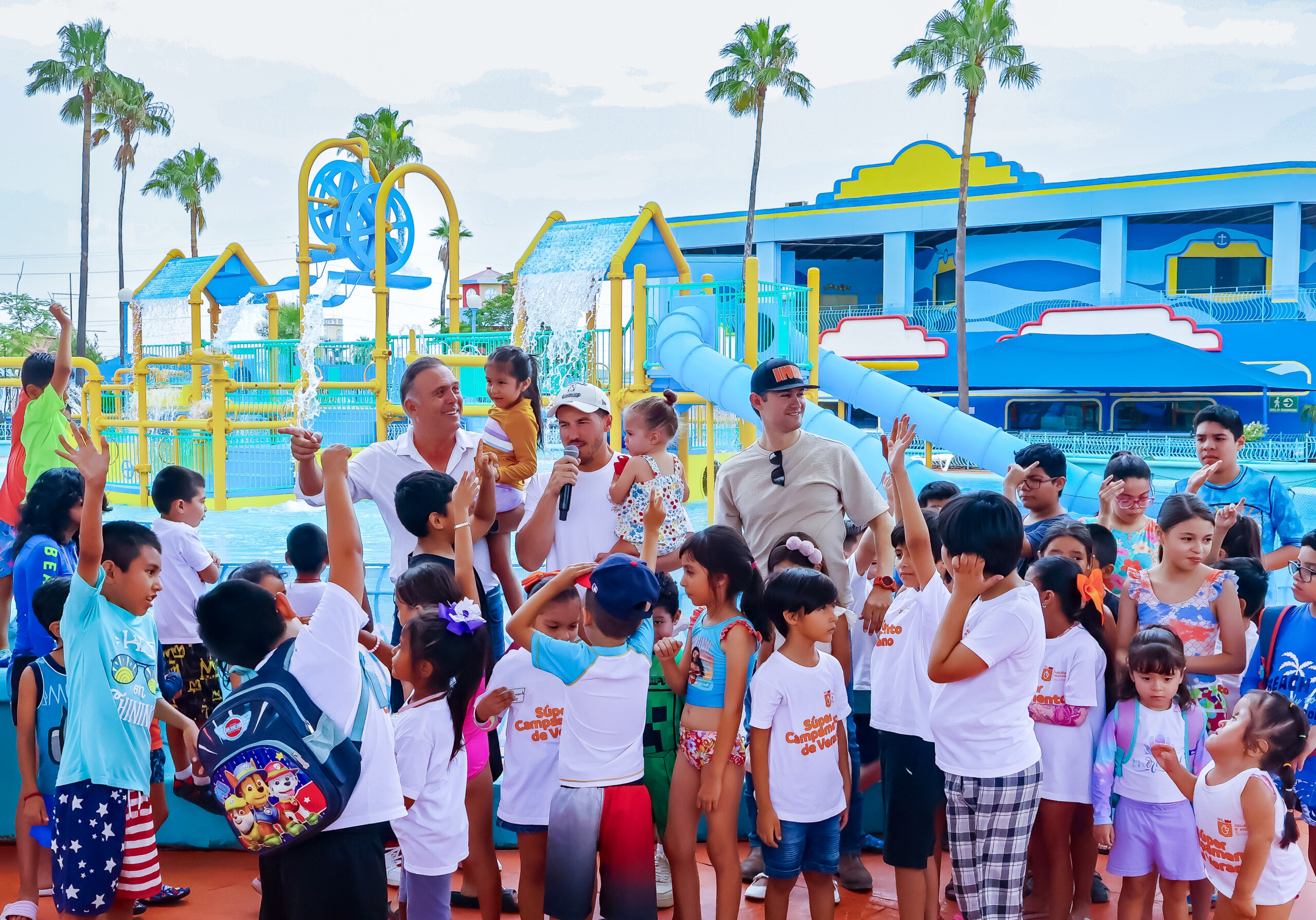 “Son cuatro albercas, son más de 5 mil metros cuadrados de alberca tiene toda la seguridad, hay salvavidas, hay equipos de primer nivel para el tratamiento del agua, y sobre todo tienen muchos toboganes y muchas áreas para que los niños puedan jugar y divertirse”, agregó.